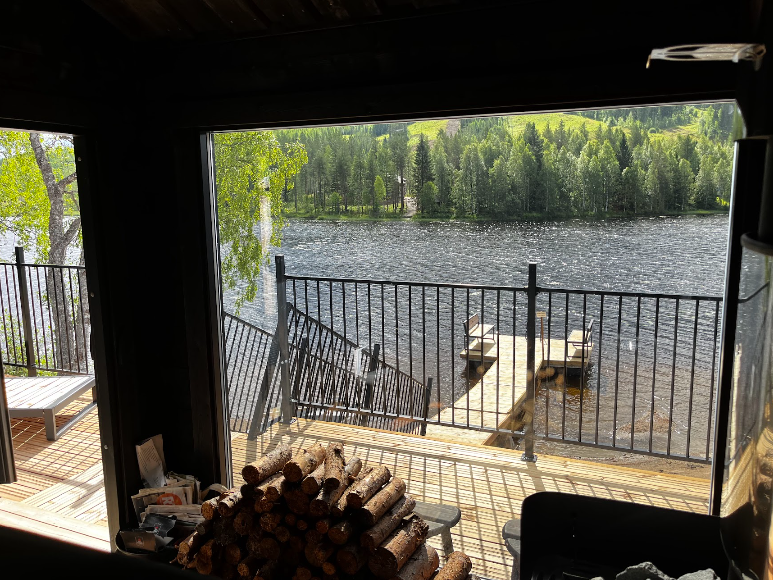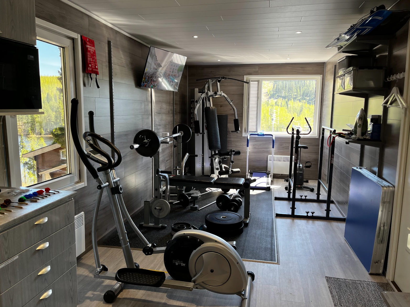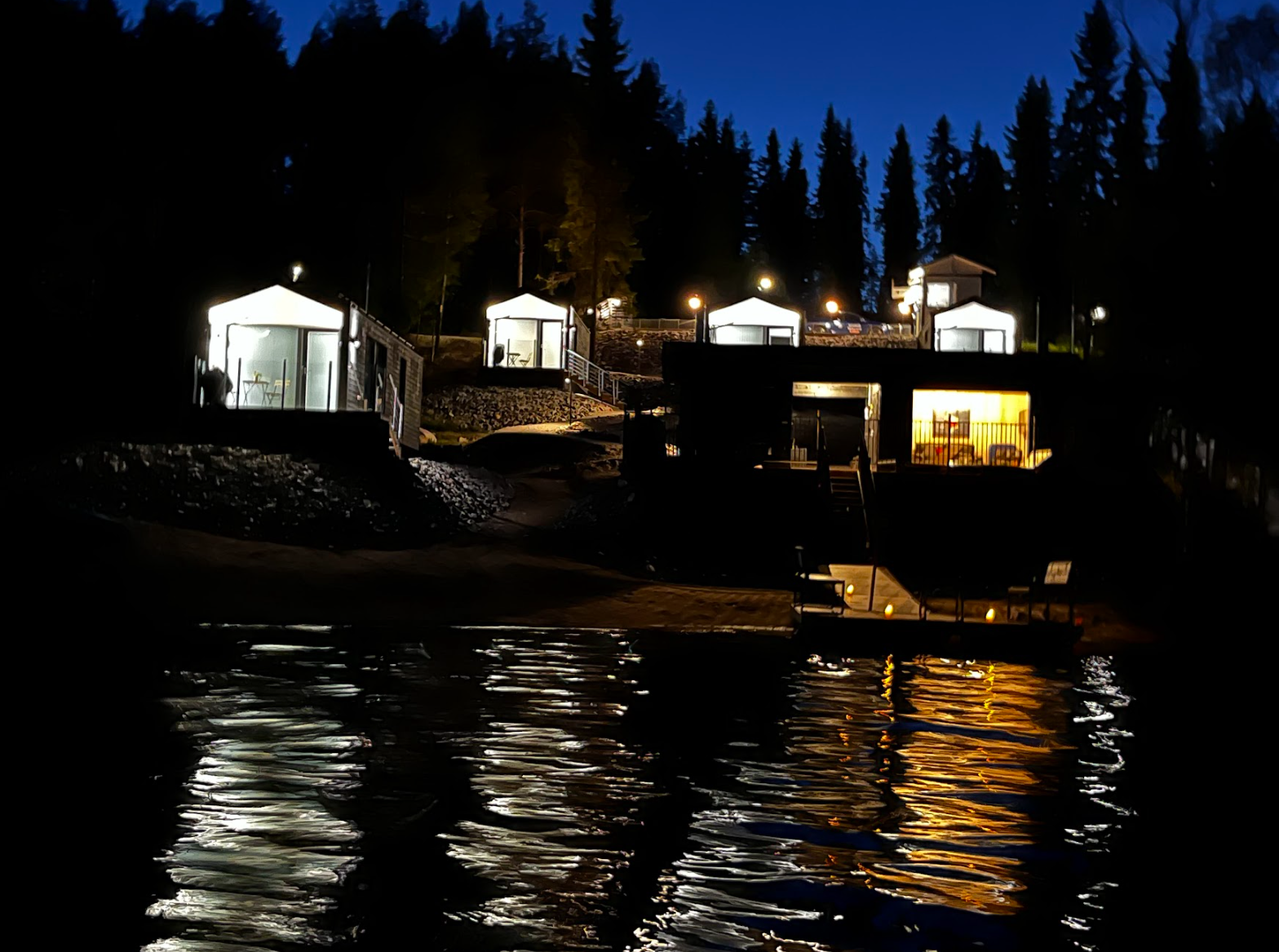 Neljän mökin yhteiskäytössä lisäksi rantasauna (puusauna) näköalaikkunoilla, sauna-/takkatupa näköalaikkunoilla ja 4K äly-TV:llä, jossa myös Netflix ja Amazon Prime. Lisäksi mm. juomajääkaappi ja Xbox-pelikone. Weber-kaasugrilli yhteiskäytössä.